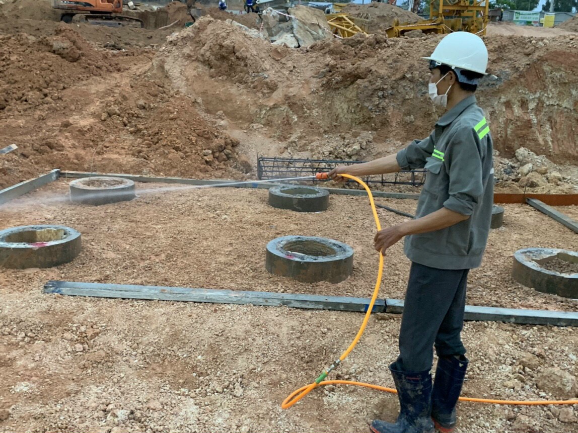 - Phun thuốc diệt mối vào đất nền trước khi đổ bê tông.